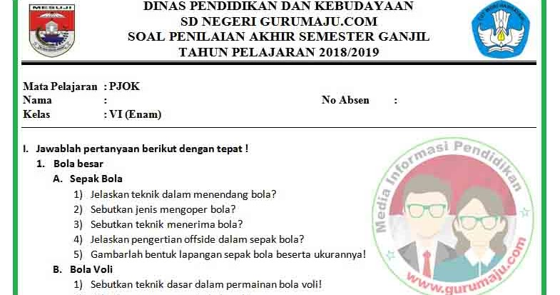Soal Uas Pas Pjok Kelas 6 Kurikulum 2013 Revisi 2018 Guru Maju